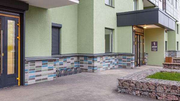 Обустроенная придомовая территория, детский городок с безопасным покрытием, спортивные площадки с тренажерами для взрослых, устройство дорожек, прогулочных зон, озеленение площадью 14 000 кв.м.